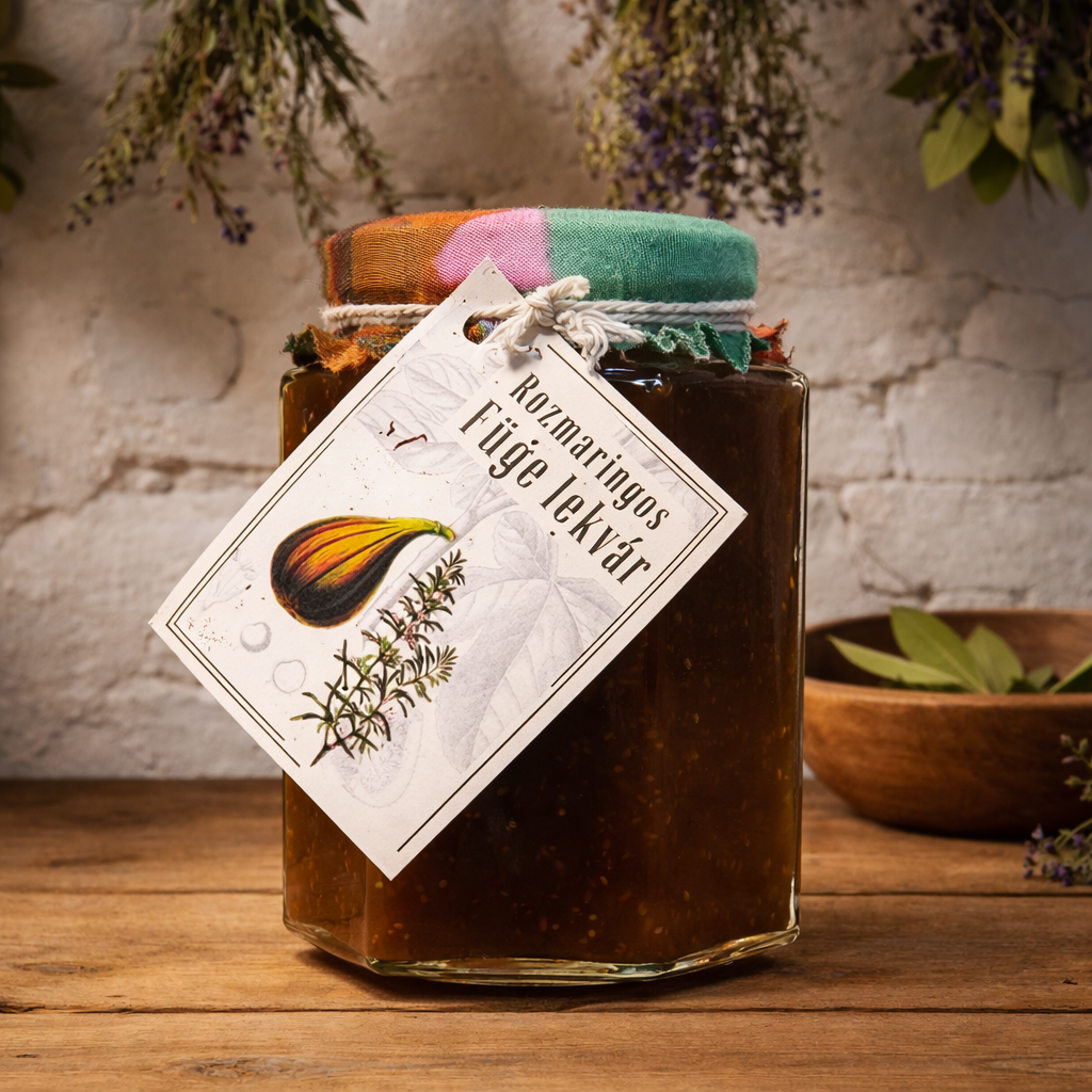 Minden üveg Dingirdomb Rozmaringos Fügelekvárban benne van a kézműves gondosság, az érett gyümölcs gazdagsága és a fűszernövény tiszta aromája.